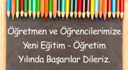 Tüm Öğretmen ve Öğrencilerimize yeni eğitim öğretim yılında başarılar dileriz.